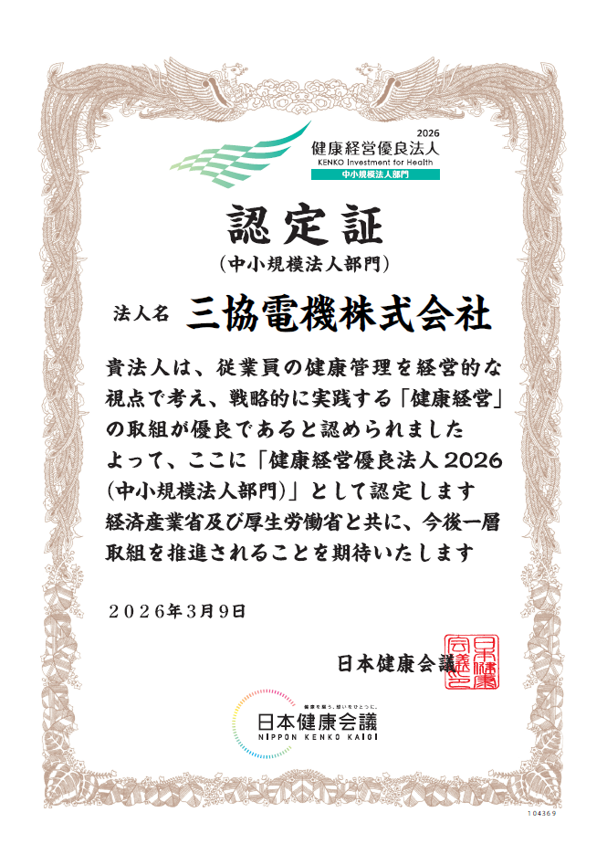 ☞2025.3.27 健康経営優良法人2025に認定されました! - 三協電機株式会社